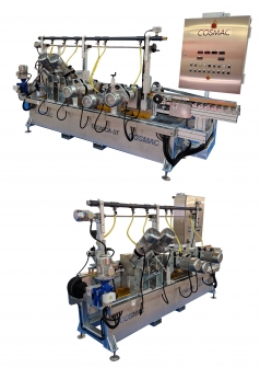 Macchina bordatrice profilatrice specificamente studiata per la creazione del battiscopa “Tecnico” caratterizzato da bisellatura a 45°.